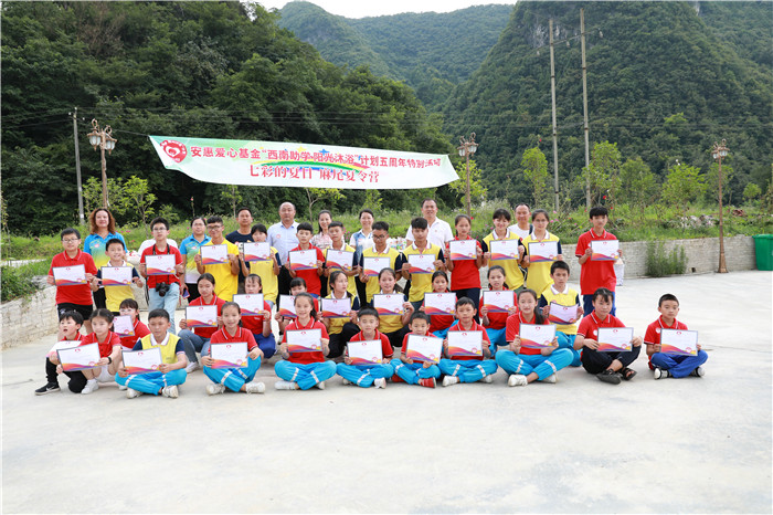 2018年是安惠愛心基金“西南助學(xué) 陽光沐浴”計劃實施的第五年。每年安惠江海志愿者們都會來到貴州省獨山縣麻尾鎮(zhèn)開展愛心助學(xué)活動,與這里的師生們相聚。7月8-12日,志愿者們帶著6名南通的孩子們再次踏上這片土地,和當(dāng)?shù)貙W(xué)生互動、交流、學(xué)習(xí),一起度過一段非常有意義的快樂時光。安惠公司副董事長陸漢萍也專程來到麻尾,看望一直牽掛著的學(xué)生們,走訪受資助的學(xué)生,并實地了解空氣能熱水器的使用情況。